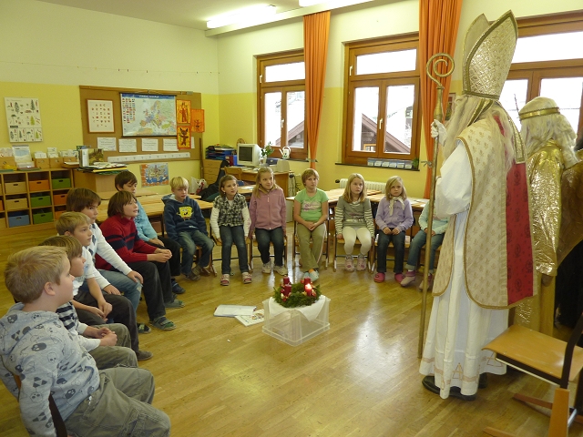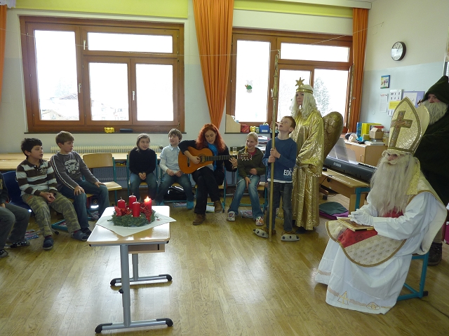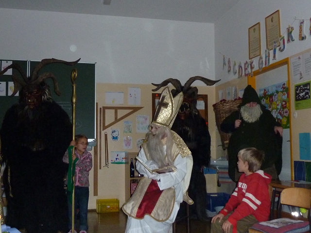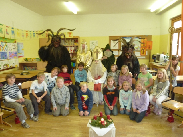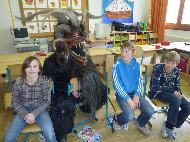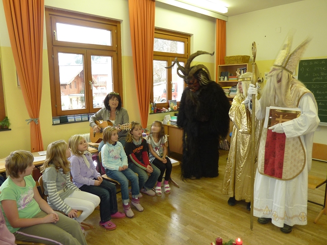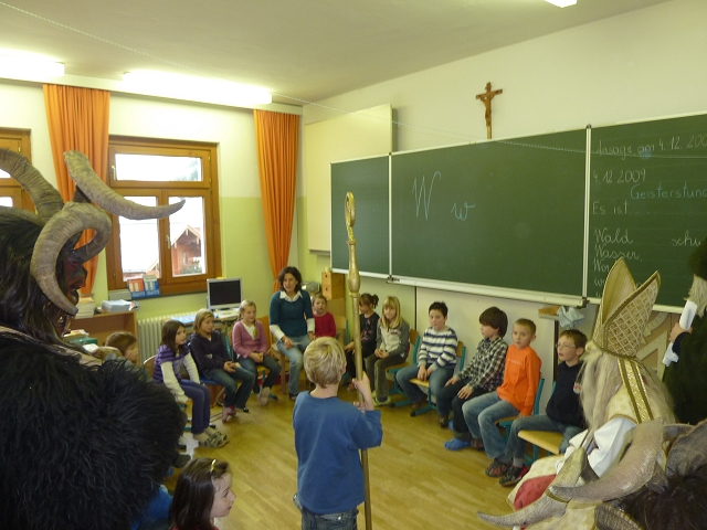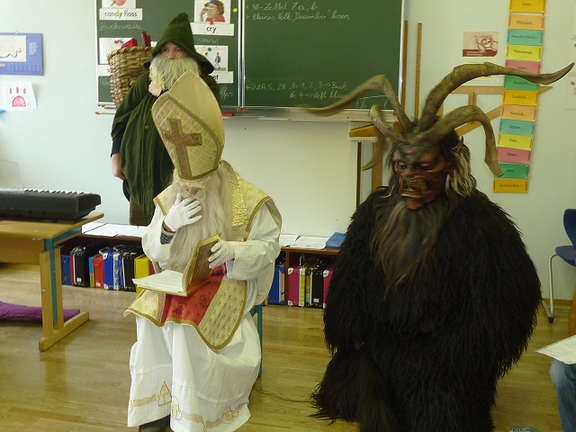 Der Nikolaus kam mit seinen Begleitern, dem Krampus und dem Engel am 04. Dez. 2009 in die Schule. |